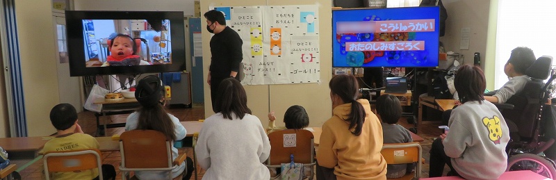 学校生活/小学部 あそび(小3) 2026年3月2日 訪問教育の友達との交流授業で「すごろく」をしました。イベントマスに止まった際は、友達に好きなことや得意なことを伝えたり、みんなでダンスを踊ったりして楽しみました!